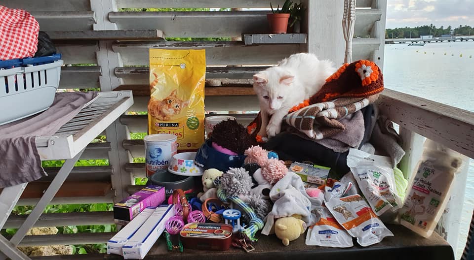 Bacs de litière, peluches, jouets, dodos, couvertures, cage, gamelles, colliers, sérum physiologique, pipettes, sachets de pâtée (parfaits pour nos chats fragiles 🐱 !), antiparasitaires, lait en boîte... Tout y est 🥰 !